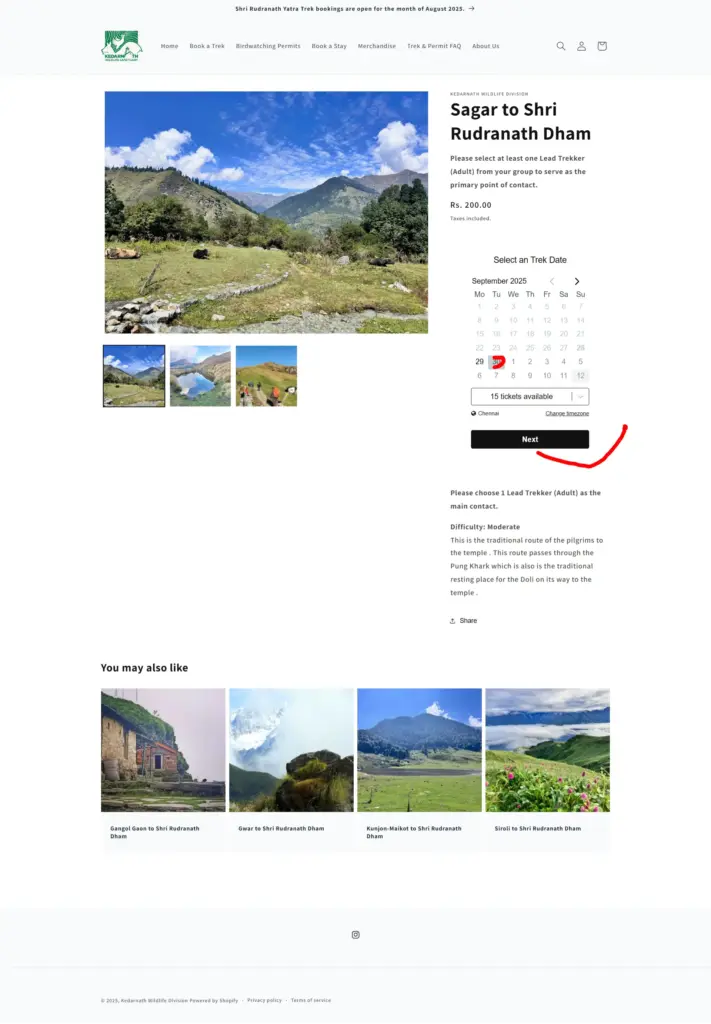 To start, go to the online portal dedicated to Rudranath trek registrations: