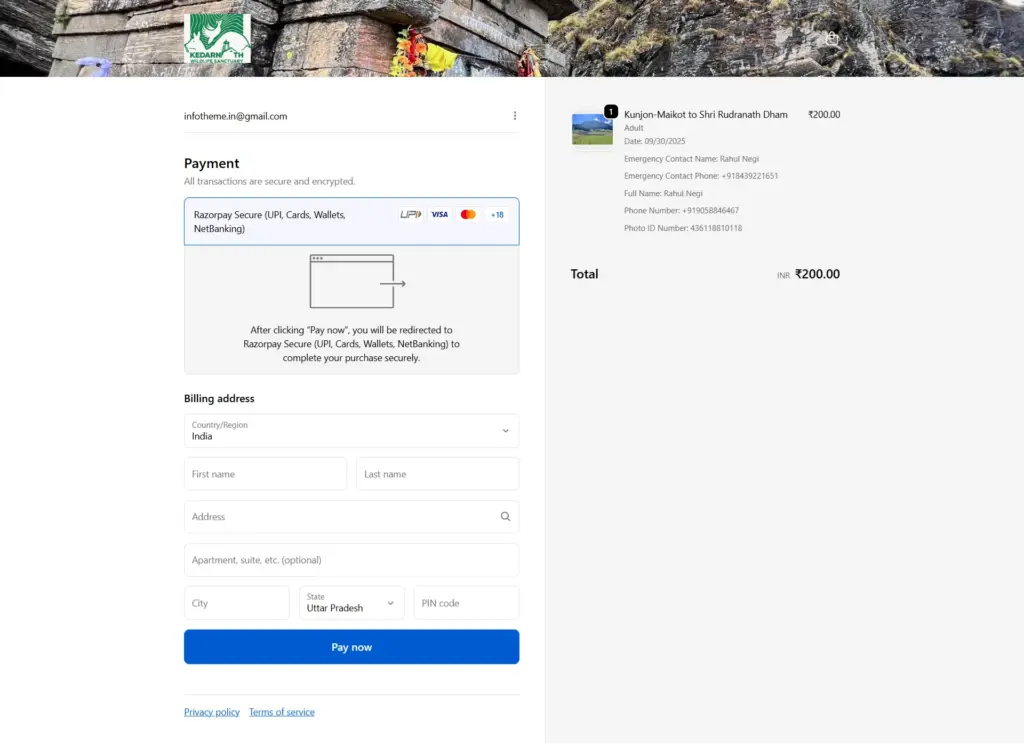 When it’s time to check out, enter your email address. You’ll get a code to verify your booking and receive your receipt. This ensures security for your payment and trek details.